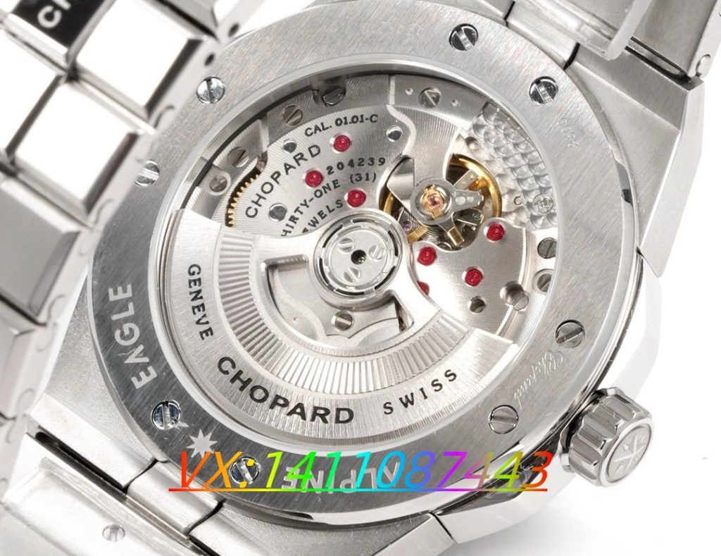在機(jī)芯方面,這款腕表搭載 9015 改 Chopard 01.01-c 機(jī)芯,展現(xiàn)出了卓越的性能。9015 機(jī)芯作為一款成熟且穩(wěn)定的基礎(chǔ)機(jī)芯,經(jīng)過(guò) GH 廠的精心改造和調(diào)校,不僅在走時(shí)精準(zhǔn)度上表現(xiàn)出色,能夠滿足日常使用需求,而且在穩(wěn)定性和耐用性方面也有可靠保障。其復(fù)刻的 Chopard 01.01-c 機(jī)芯細(xì)節(jié),從夾板的紋路到零件的刻字,都高度還原了原版機(jī)芯的風(fēng)貌,展現(xiàn)出 GH 廠在機(jī)芯復(fù)刻工藝上的深厚功力。無(wú)論是從實(shí)用性還是收藏價(jià)值的角度來(lái)看,這樣的機(jī)芯配置都為這款腕表增色不少。?