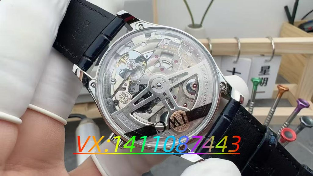 全新葡七在鏡面上的設計同樣可圈可點。為了營造更薄的視覺與佩戴體驗,IWC 采用了鍋蓋式藍寶石鏡面。這種特殊形狀的鏡面,一方面為指針提供了更為充裕的行走空間,減少了視覺上的局促感;另一方面,在美觀程度上實現了質的飛躍。其獨特的弧度,能夠更好地折射光線,讓表盤的色彩與紋理更加生動地展現出來,賦予腕表一種別樣的深邃美感。值得稱贊的是,APS 在細節上做到了極致,腕表背面的鏡面同樣采用了鍋蓋藍寶石鏡面。這一設計使得背透效果更加出色,透過晶瑩剔透的藍寶石鏡面,機芯的精美運作清晰可見,每一個零件的律動都仿佛是一場精密機械的舞蹈,充分展示了腕表內部構造的藝術之美。?