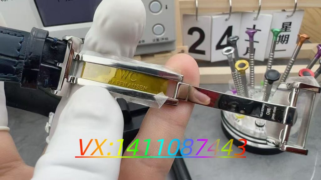 ZF 廠標配優質小牛皮表帶,壓鱷魚紋路柔軟舒適,無需長時間磨合。蝴蝶式表扣做工扎實,IWC 徽標刻字清晰,開合手感清脆穩固。其 14mm 左右的厚度雖略厚于 APS 廠,但視覺上無明顯笨重感,適配 16-19cm 腕圍,經典設計在正裝場合更顯沉穩。?