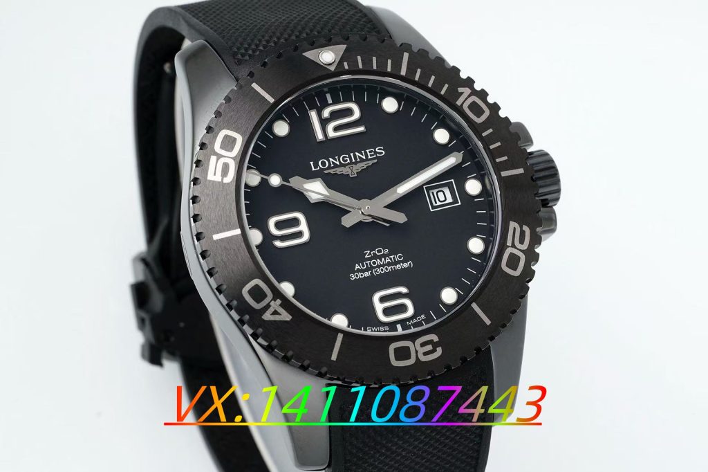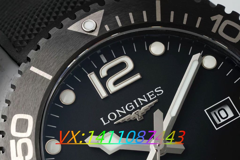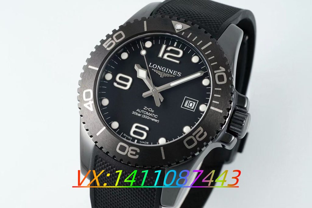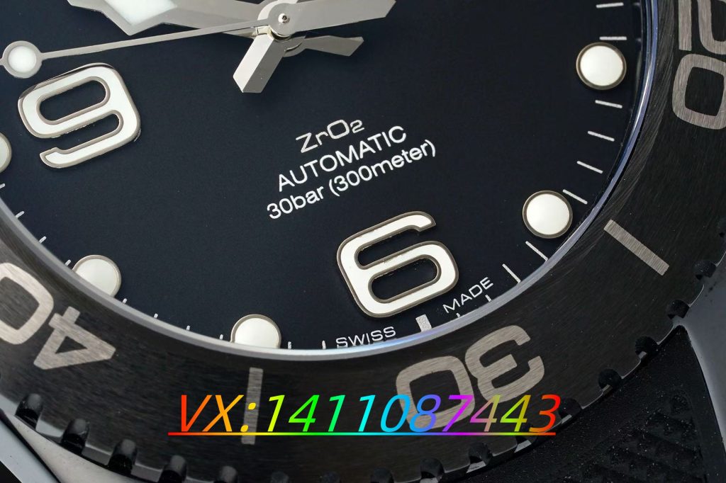 表殼的線條處理同樣值得稱道。AF 廠嚴格遵循原作的設計語言,表殼側面采用流線型弧度切割,從表圈到表耳的過渡自然流暢,既保留了運動腕表應有的硬朗輪廓,又通過細膩的打磨工藝消除了棱角帶來的硌手感。旋入式表冠上雕刻有浪琴經典的飛翼沙漏標志,與表殼的黑色陶瓷材質形成巧妙呼應,既保證了操作時的防滑性,又彰顯了品牌的辨識度。?