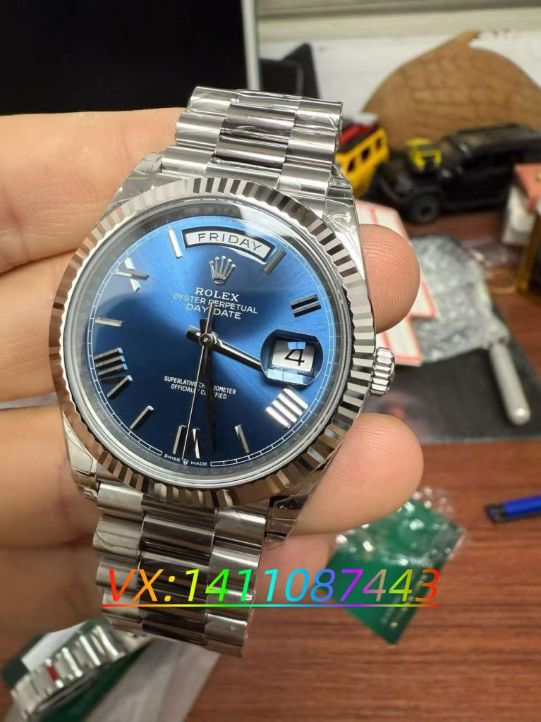 41mm 的表徑設(shè)計,兼顧了佩戴的舒適性與視覺的大氣感,無論是日常通勤還是正式場合,都能輕松駕馭。表盤采用粉面條釘刻度設(shè)計,這一細(xì)節(jié)處理堪稱點睛之筆。值得一提的是,表盤實現(xiàn)了 0 色差呈現(xiàn),與正品的視覺效果幾乎無異。粉面的色調(diào)柔和而不張揚,在不同光線條件下都能呈現(xiàn)出細(xì)膩的光澤,搭配鑲嵌的莫桑鉆,更是在低調(diào)中彰顯出奢華質(zhì)感。莫桑鉆的切割工藝精湛,折射出璀璨的光芒,為表盤增添了幾分靈動與華麗。?