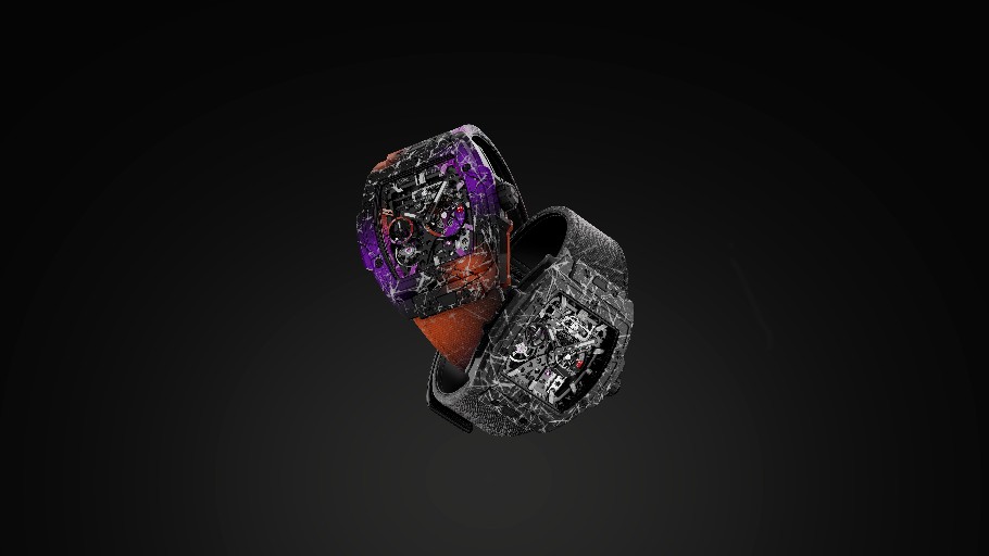 延續 2023 年的成功經驗,兩款全新腕表的表殼均由未經拋光的啞光黑色復合材質打造,意在賦予表殼真實墻壁般的紋理與粗糙邊緣,營造出涂鴉藝術作品中的視覺效果。宇舶表在復合材料中添加生物基環氧樹脂,以保證其出色的堅固性,并利用石墨烯進行強化。碳基材料的加入,使復合材料的強度提升了 15% 至 20%。最終,三種材料融合,成功再現了城市墻壁的粗獷與堅韌特質。